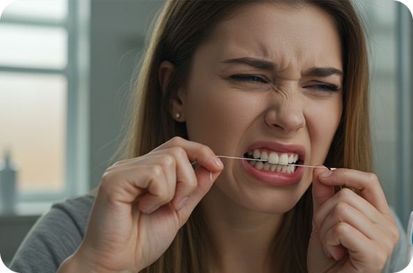 🧵 Flosdraad breekt of rafelt: vooral bij strakstaande tanden of beugels