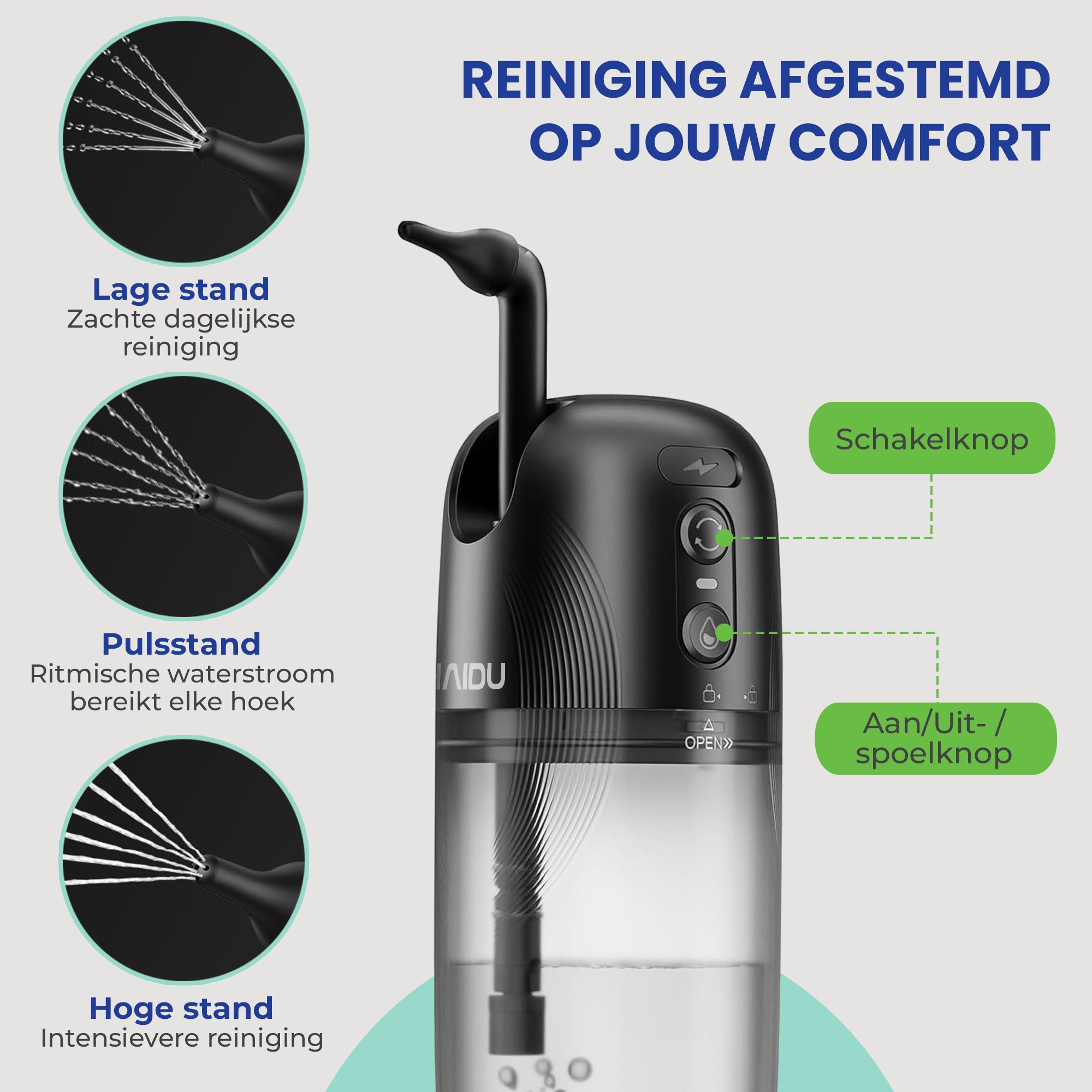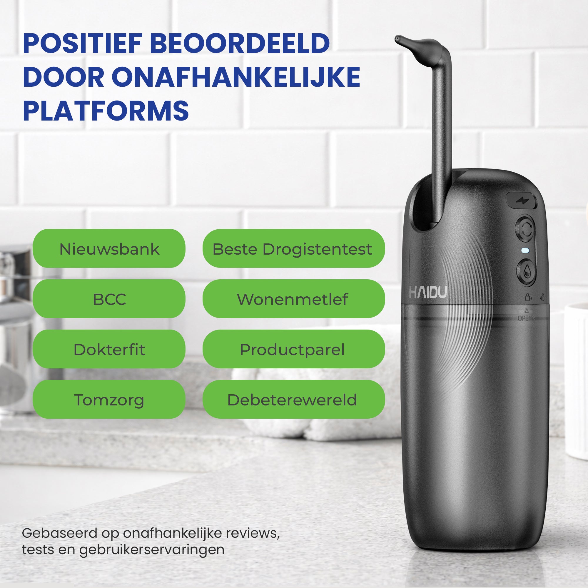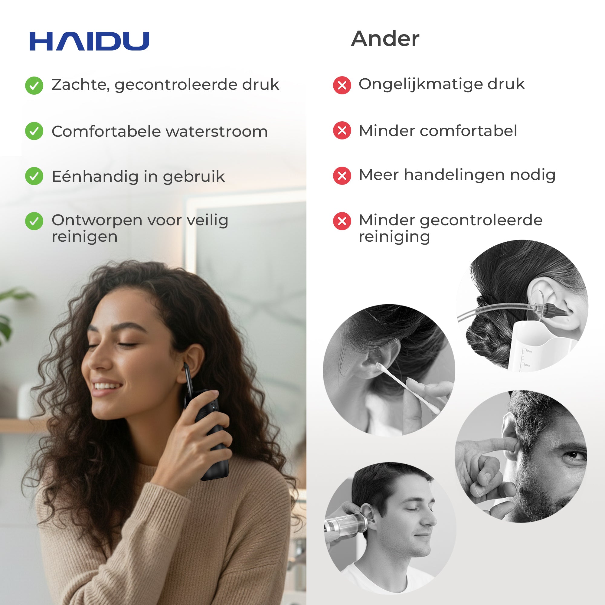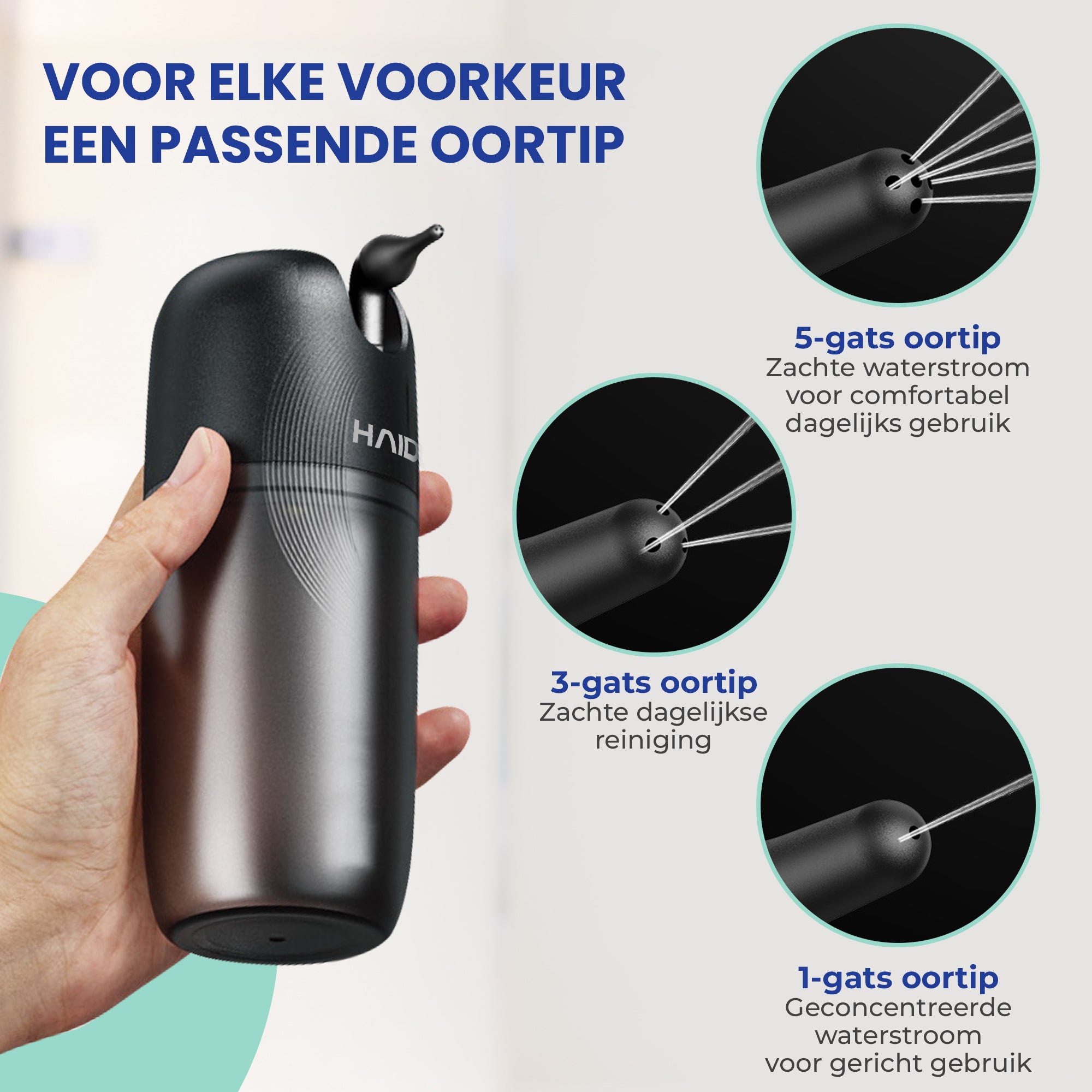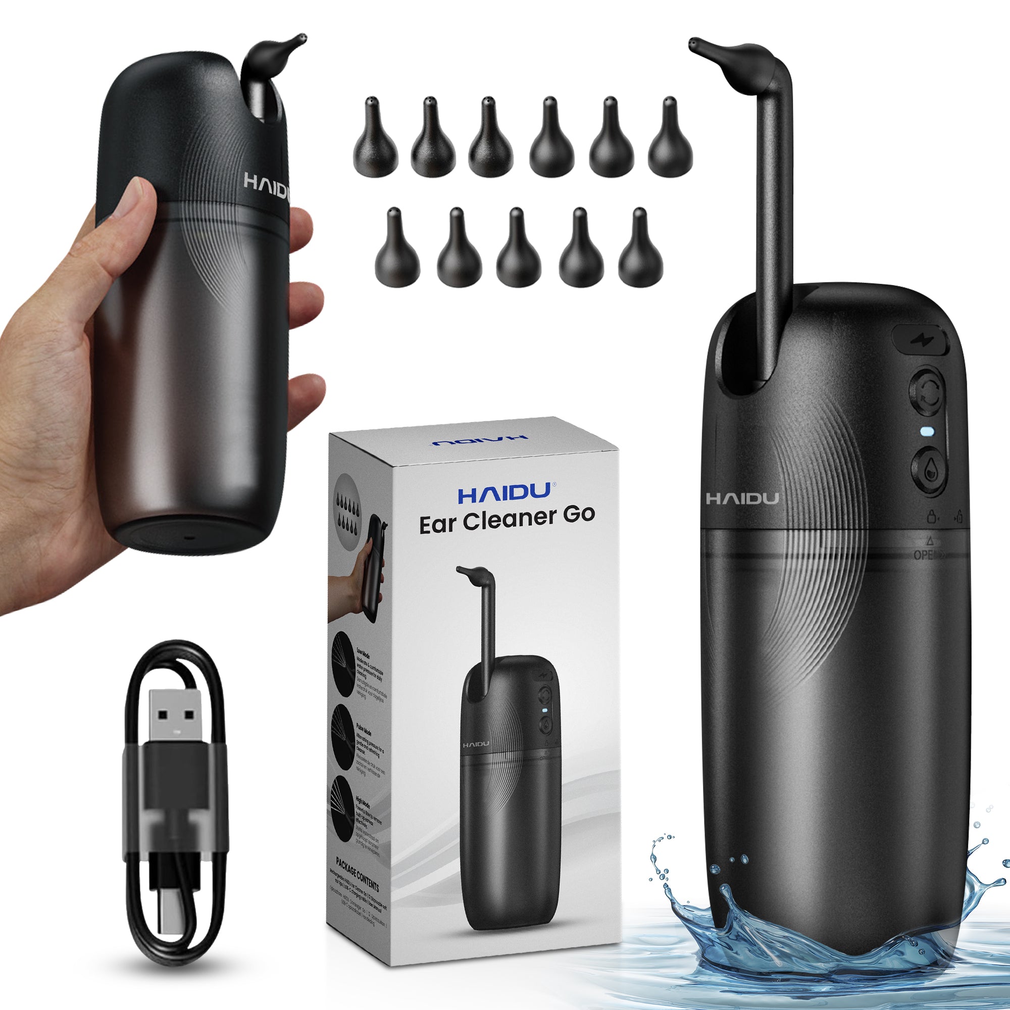 The HAIDU Ear Cleaner Go is a compact electric ear rinsing device that safely and effectively removes earwax using controlled water pressure. With its extendable tube, multiple nozzles and three cleaning modes, you can tailor each cleaning to your needs. Ideal for daily use and perfectly suited for travel.