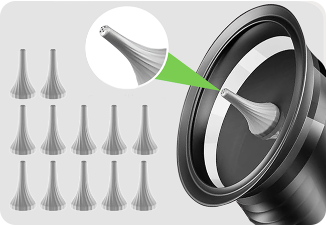 • Multiple ear tip types (single-hole, triple-hole, five-hole).