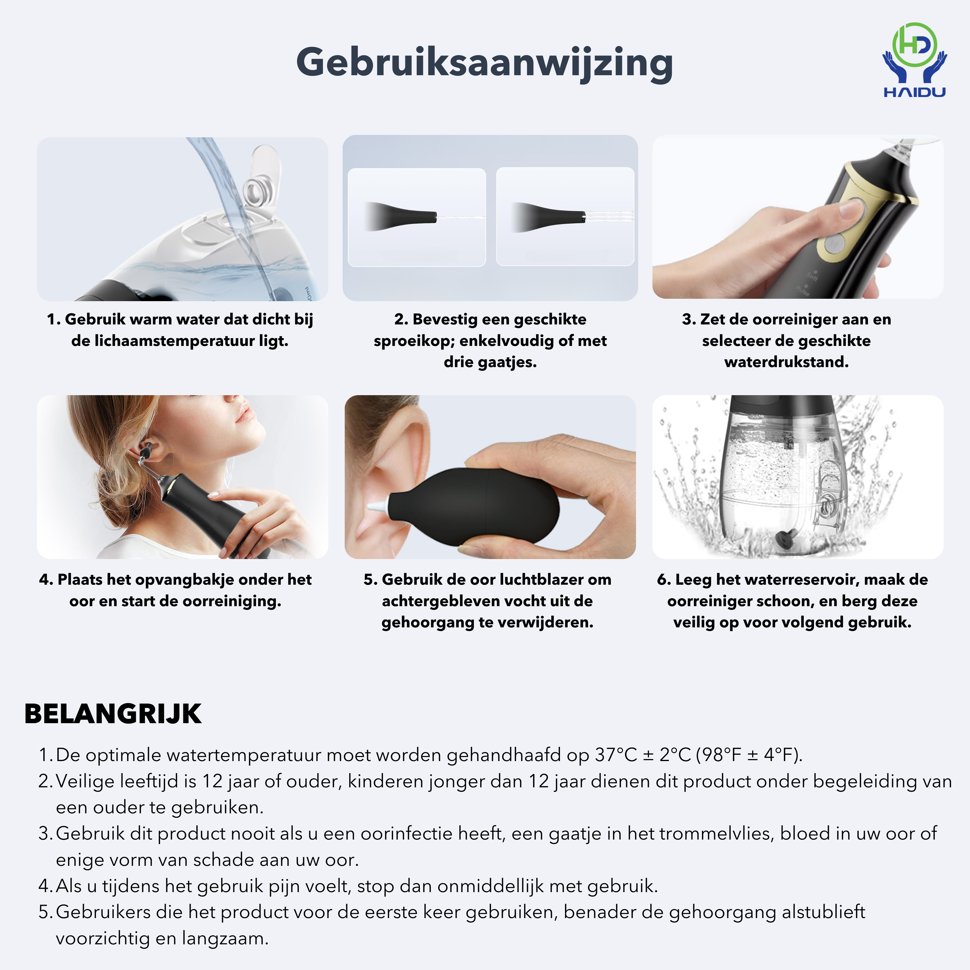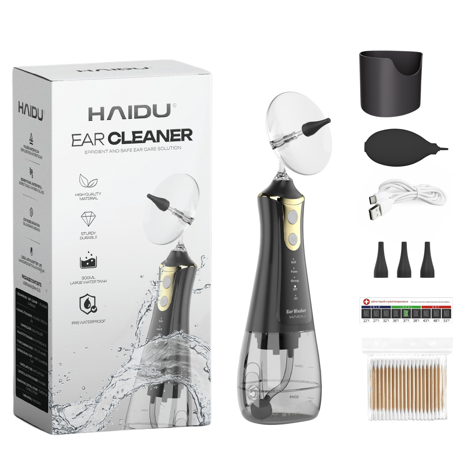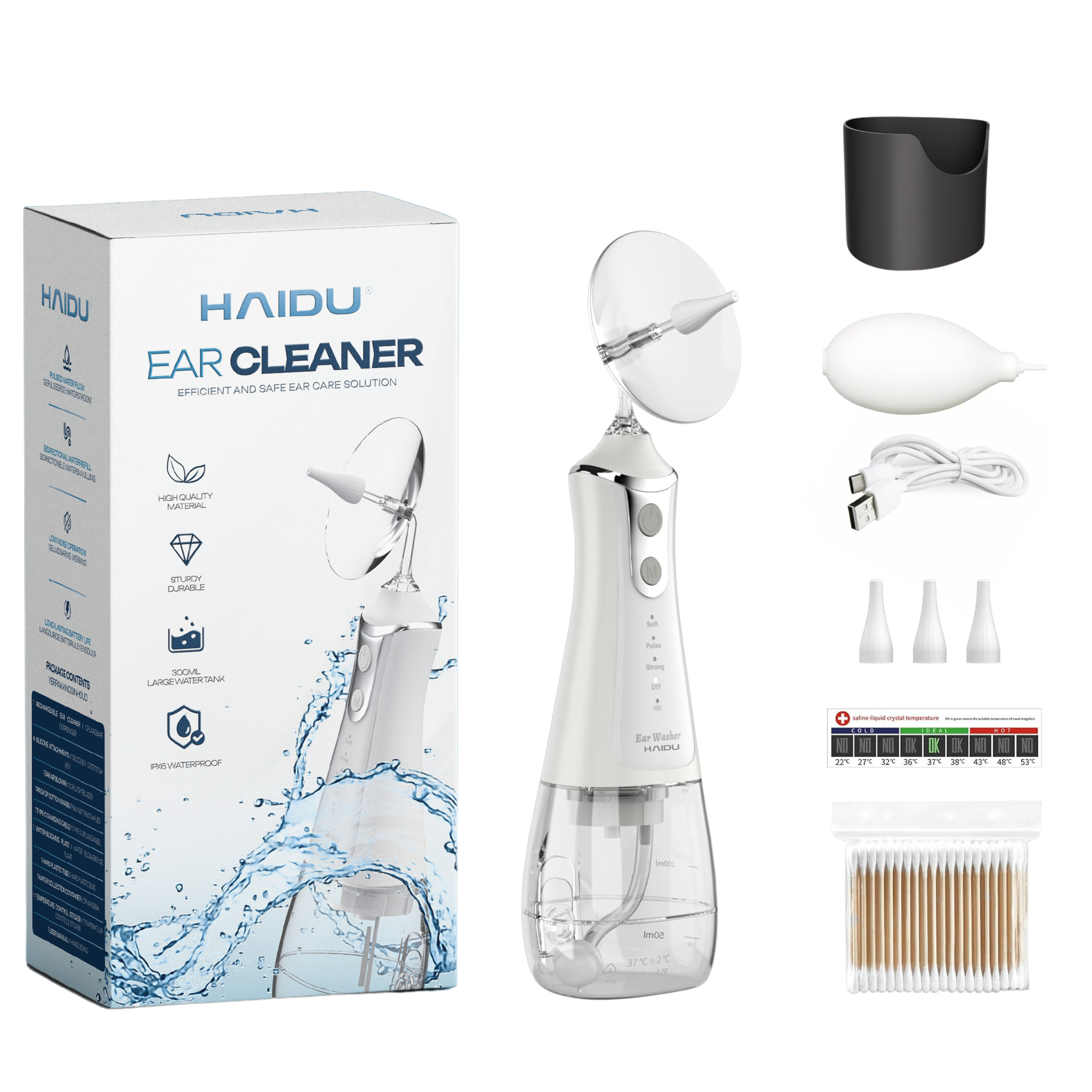 Il sollievo per la pulizia dell'orecchio HAIDU fornisce una soluzione sicura ed efficace per questo rimuovere il cerume in eccesso, che può portare a disagio e problemi all’udito. Con la pressione regolabile e le diverse modalità di pulizia, puoi adattare la pulizia alle tue esigenze. Il design compatto lo rende ideale sia per la casa che per i viaggi. La piastra di blocco dell'acqua garantisce un'esperienza pulita e sicura. Dai alle tue orecchie la cura che meritano e previeni problemi di salute con questa siringa per orecchie facile da usare.